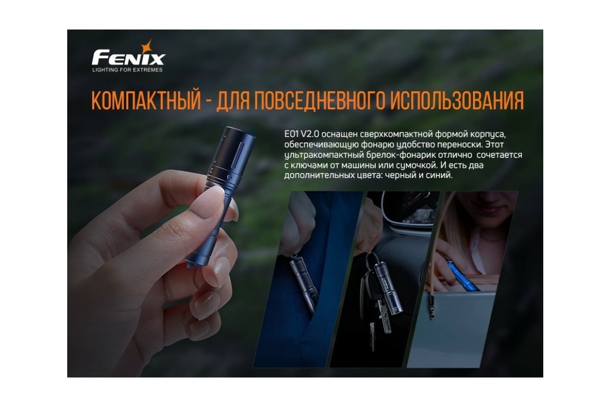 1.Фонарь Fenix E01 V2.0 черный e01v20bk - ультра компактный фонарь для ежедневного ношения.