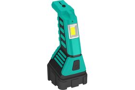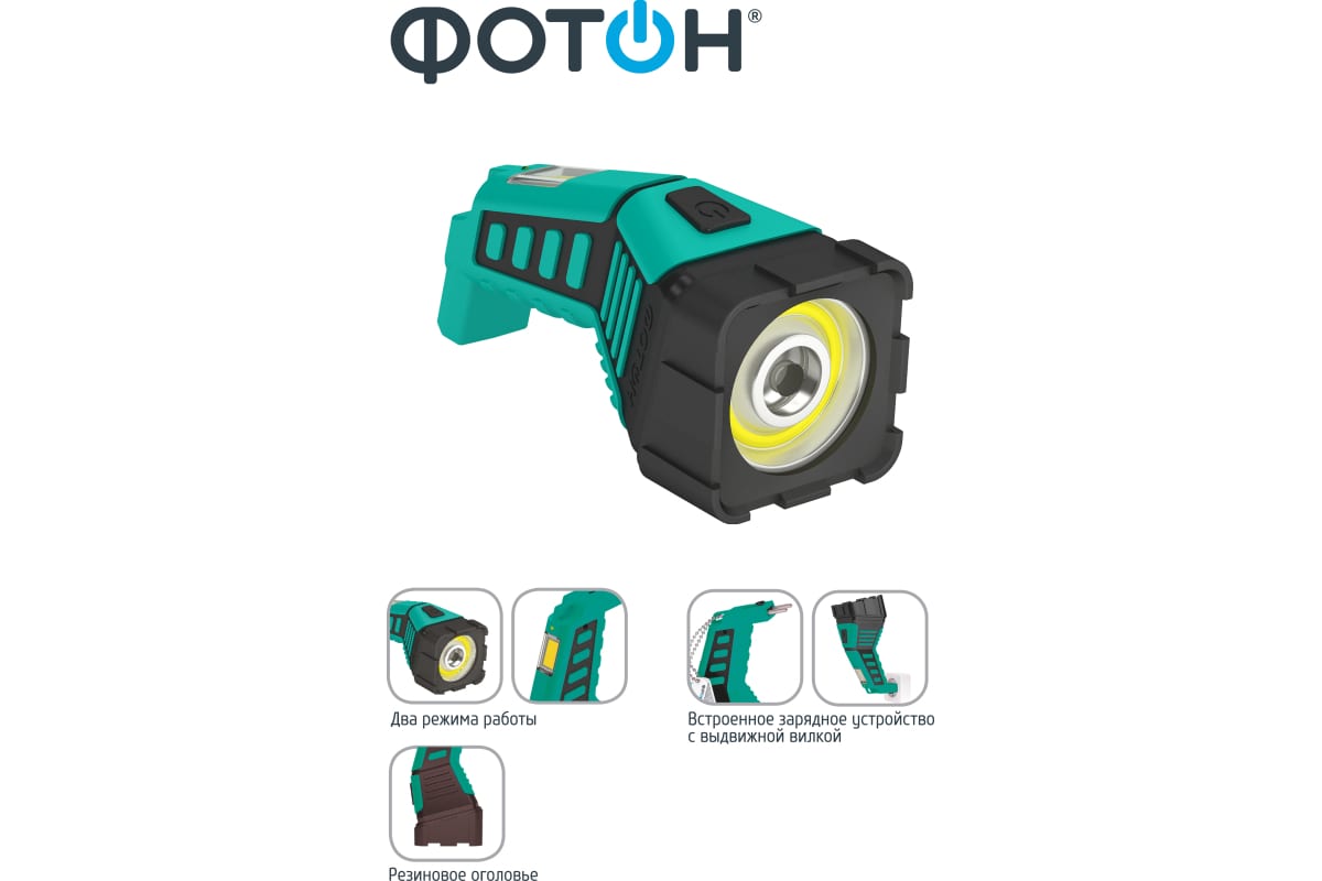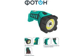 Уникальный дизайн – форма фонаря и цветовое решение созданы в стиле профессионального инструмента. Устойчивая конструкция позволяет ставить или класть фонарь, не опасаясь опрокидывания. Кольцевой COB-диод высокой мощности позволяет создать равномерное освещение на расстоянии нескольких метров от пользователя, не создаёт резких теней. Три режима работы: направленный свет с фокусирующей линзой, рассеянный свет кольцевого светодиода и рассеянный свет от боковой панели светодиодов. Резиновое оголовье придаёт фонарю повышенную ударопрочность. Встроенное зарядное устройство с выдвижной вилкой удобно в использовании, фонарь всегда готов к зарядке, если рядом есть розетка бытовой сети 220В. Аккумулятор высокой емкости обеспечивает не менее 500 циклов полного заряда/разряда фонаря. Двухрежимный индикатор заряда выключается при полной зарядке аккумулятора.