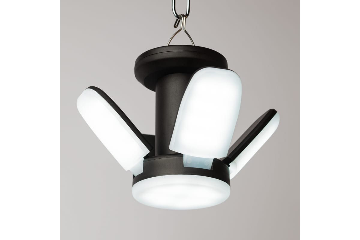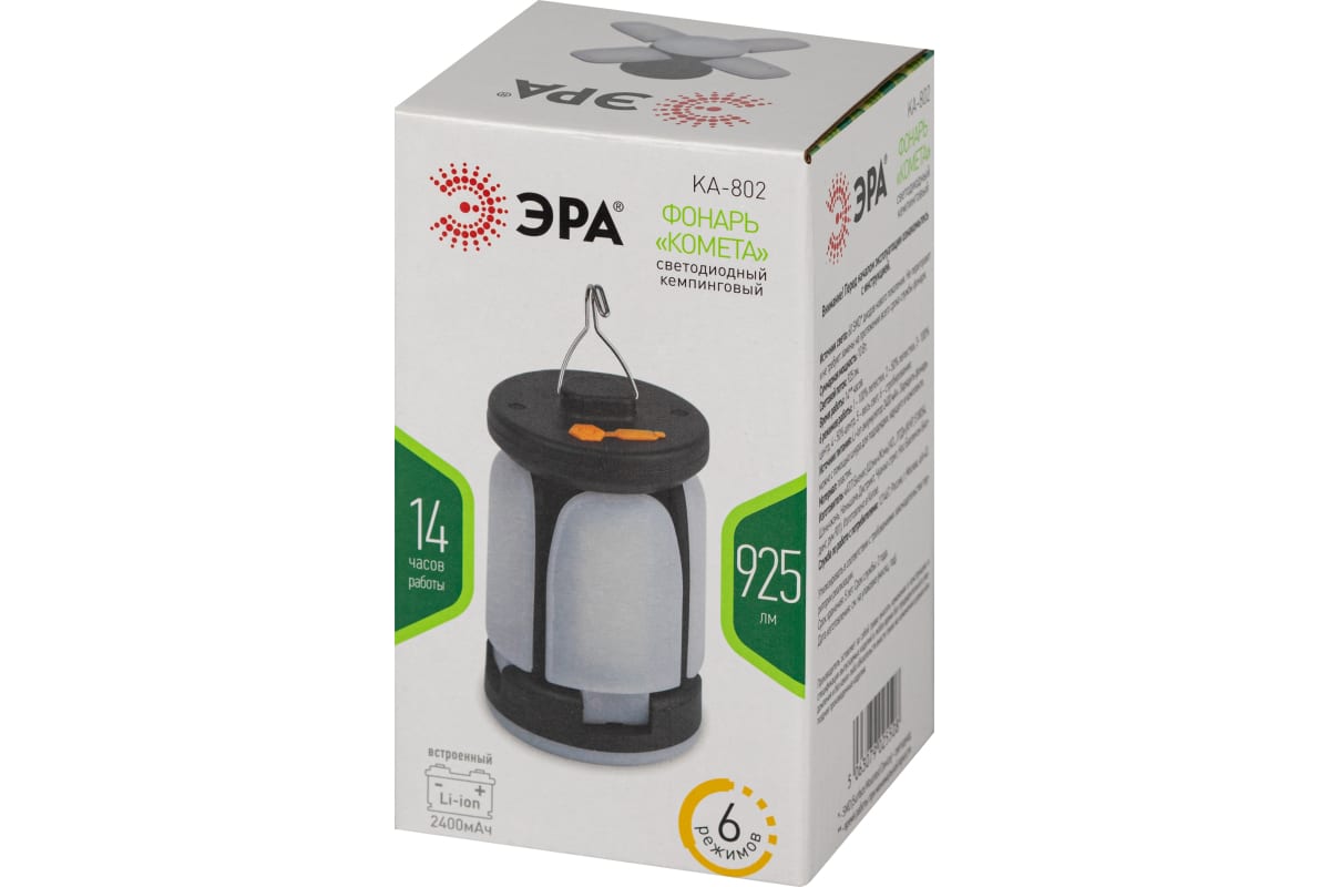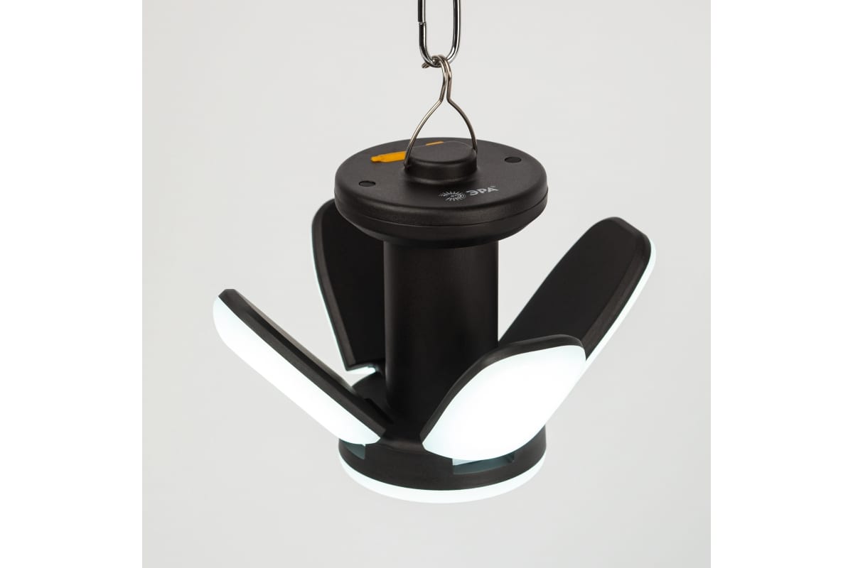ЭРА КА-802 «Комета» - компактный и легкий фонарь-светильник линейки кемпинговых фонарей торговой марки ЭРА. Новый светодиодный фонарь имеет конструкцию трансформера и позволяет организовать полноценное походное освещение на привале. Угол наклона каждого из 4 светодиодных модулей можно регулировать, качественно подсвечивая определённые зоны пространства. В полураскрытом варианте, делающем LED-фонарь похожим на комету, ЭРА КА-802 формирует широкое заливающее освещение, в раскрытом – более направленную яркую подсветку. Вариант со сложенными светодиодными модулями – это уютный настольный светильник для кемпинга.