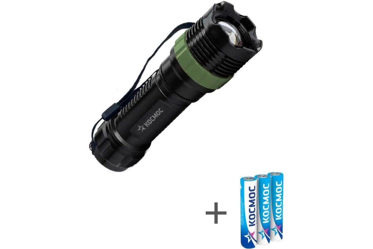 Технические характеристики КОСМОС 1ВтLED/zoom-линза/3xAAA (R03) в комплекте/ABS-пластик/ремешок ручной KOC121B
