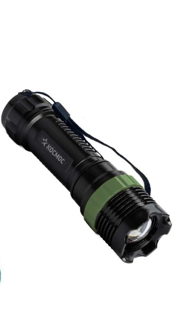 Фонарь ручной КОСМОС (KOC121B) - недорогой зум-фонарик на батарейках. Компактный и легкий, с тактическим расположением кнопки на тыльной стороне.