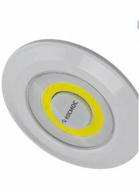 Фонарь подсветка КОСМОС (KOC308B) - свет без проводов. Крупный светильник-пушлайт часто применяется для подсветки помещений без электричества: хоз. блоки, туалеты, садовые домики. Светильник часто размещают на уровне бытовых выключателей, что особо удобно при использовании. Монтаж на самоклеящуюся основу. Набор батареек уже в комплекте на передней части блистера.