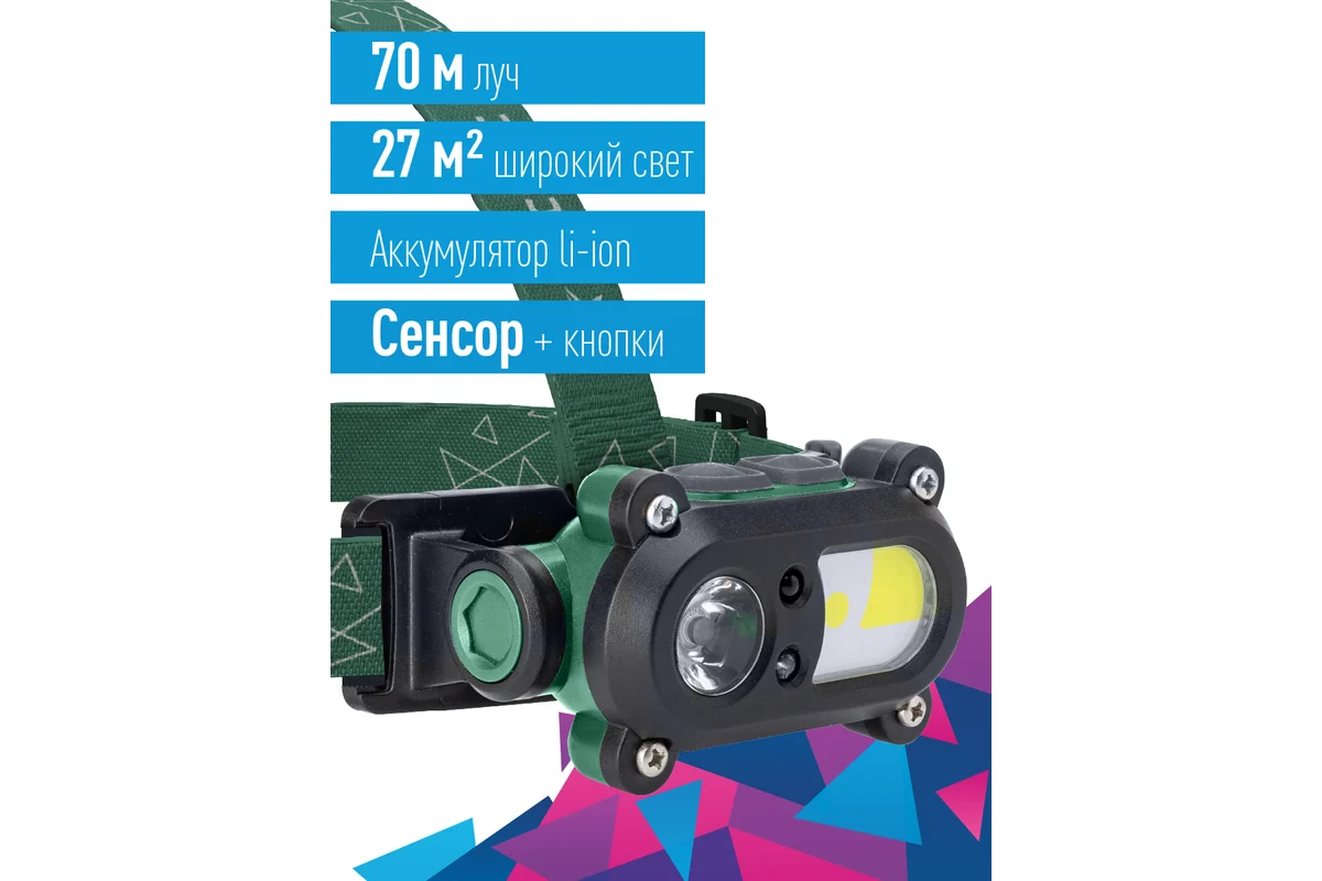 Технические характеристики КОСМОС налобный аккум сенсорн/3Вт+3ВтCOB/кол.линза/Li-ion18650 1200mAh/ABSпл/USBшн KOC502Lit