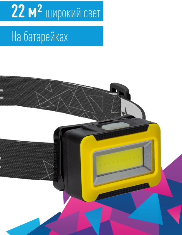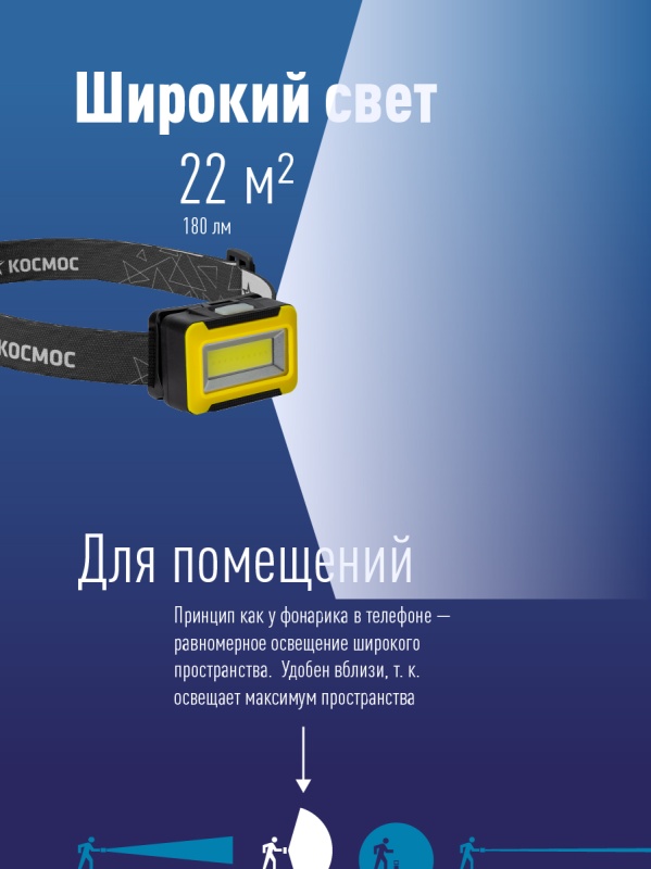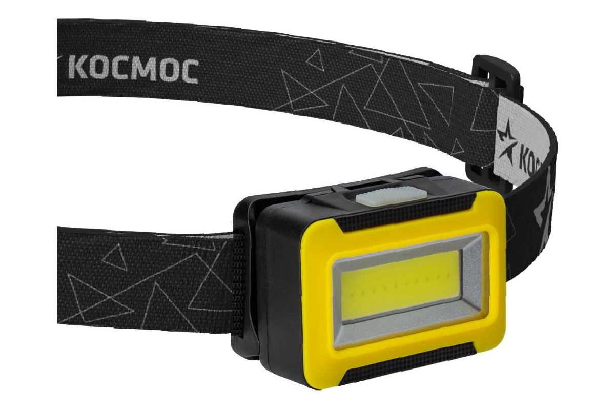 Фонарь налобный КОСМОС (KOC518B) - классический рабочий фонарик широкого света в традиционном желтом цвете.