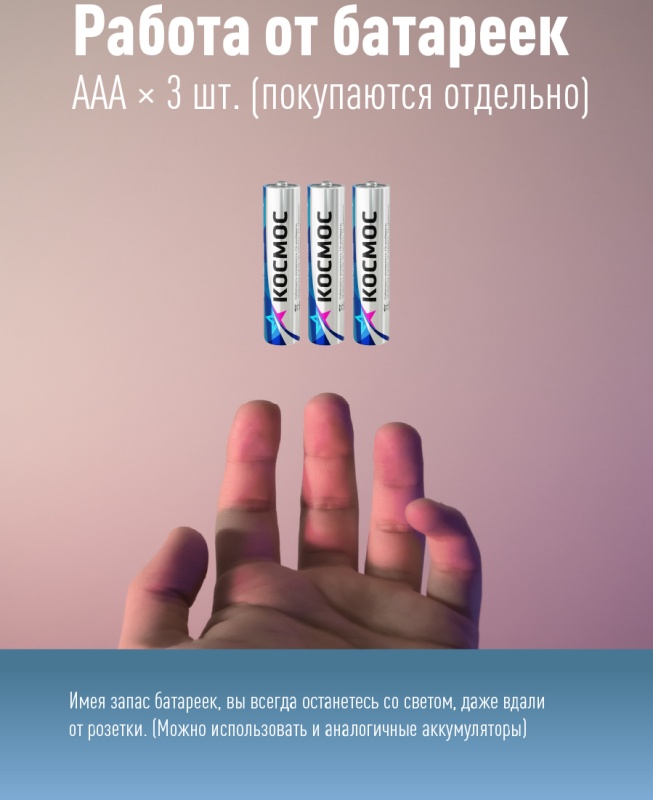 Технические характеристики КОСМОС 3ВтCOBLED/3xAAA/корпус ABS-пластик KOC518B