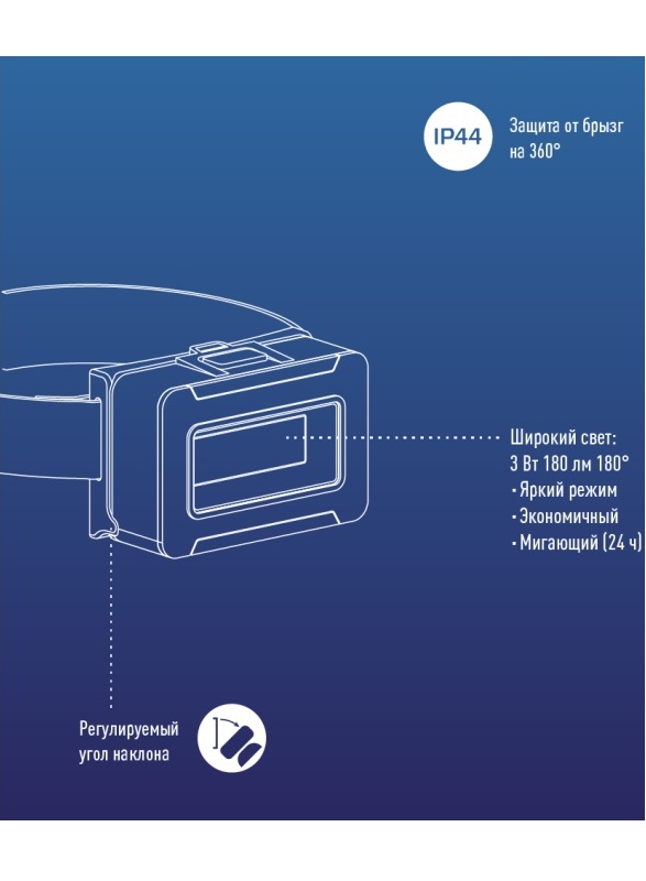 5.Налобный регулируемый эластичный ремешок.