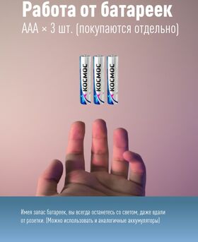 1.Источник света: 3Вт COB LED; Источник питания: батарейки 3xAAA (в комплект не входят).