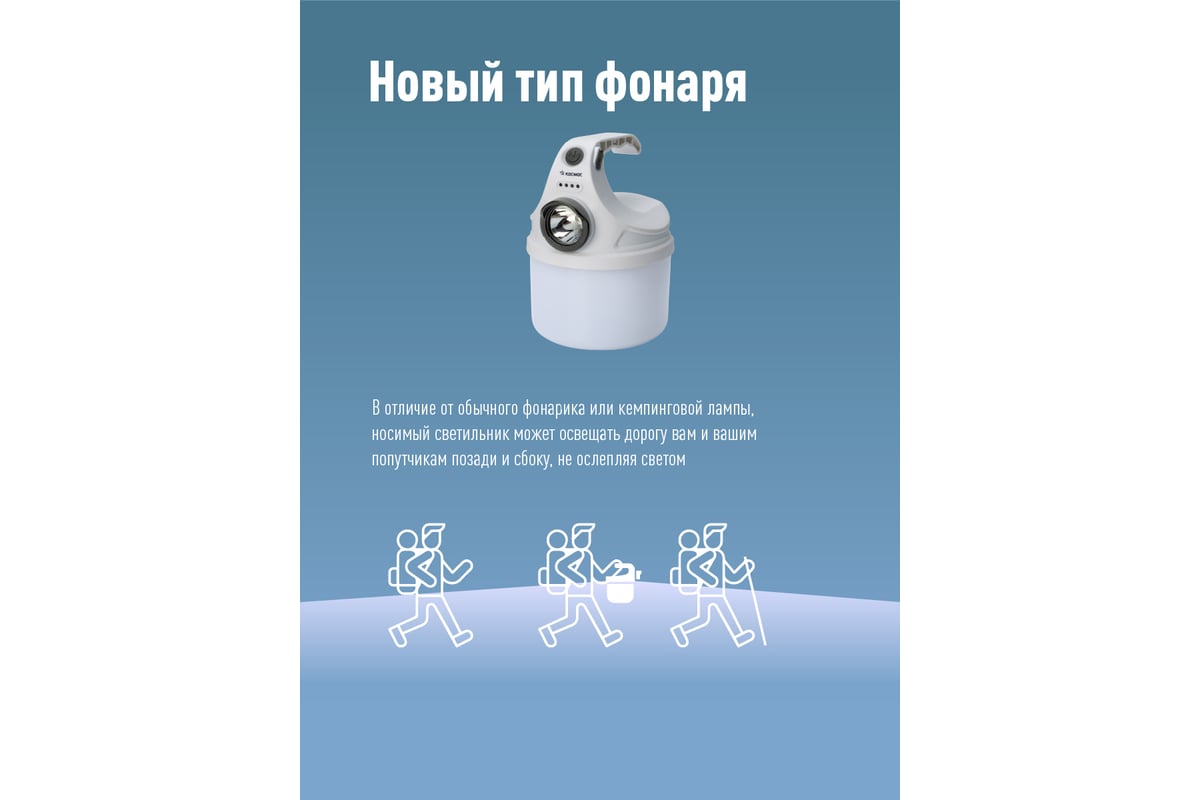 Кемпинговая фонарь-лампа для прогулок КОСМОС (KOC614Lit). Традиционно, кемпинговые фонари предназначены для стационарного использования. Новый тип фонаря-лампы можно применять стационарно, а также удобно использовать прямо на ходу.