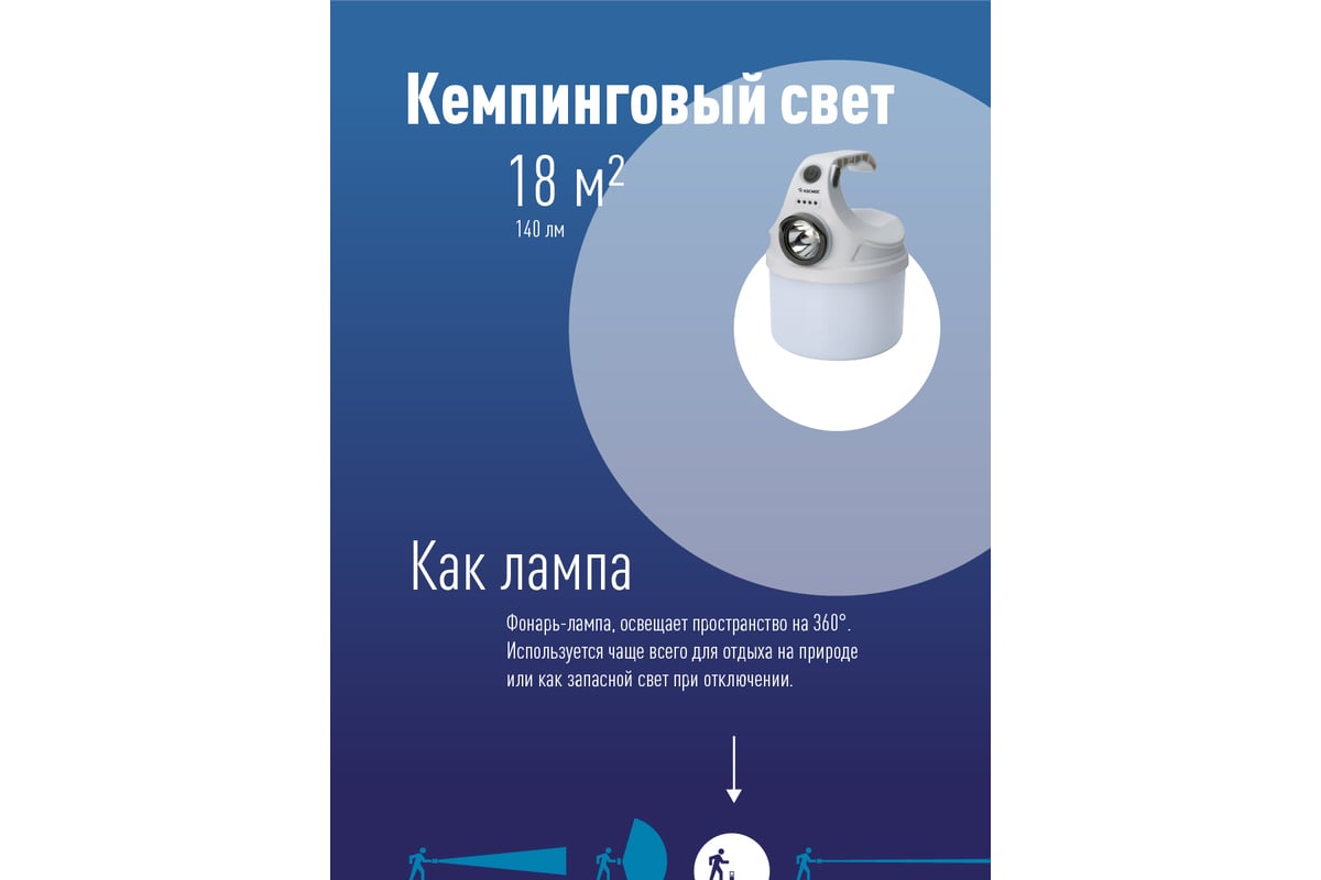 -Дистанция освещения: 18м2 (круговой кемпинговый свет)/ 80 м.