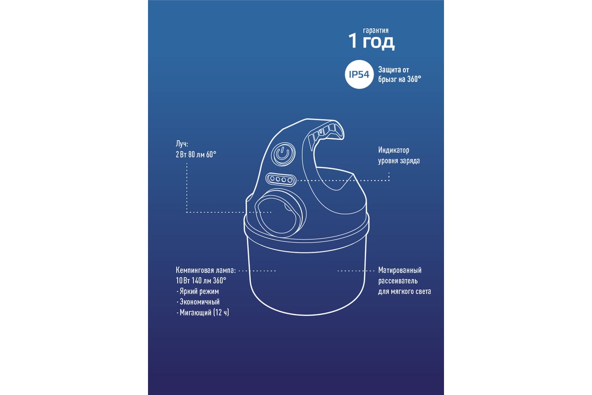 -Световой поток: 140 лм. (круговой кемпинговый свет)/ 80 лм. (луч)