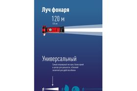 -Дистанция освещения: 120 м. (луч)/24м2 (широкий свет).