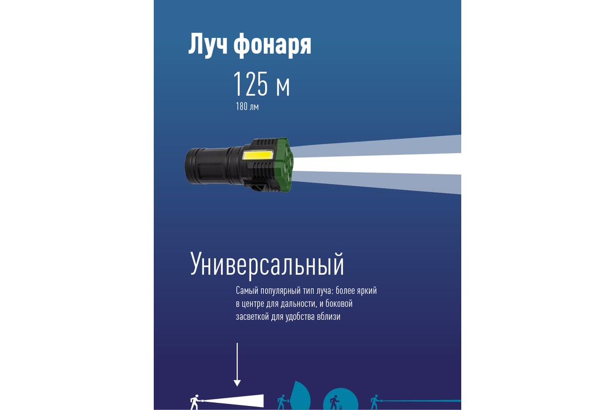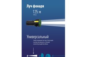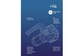 -Дистанция освещения: 125 м. (луч)/23 м2 (широкий свет, боковой светильник).