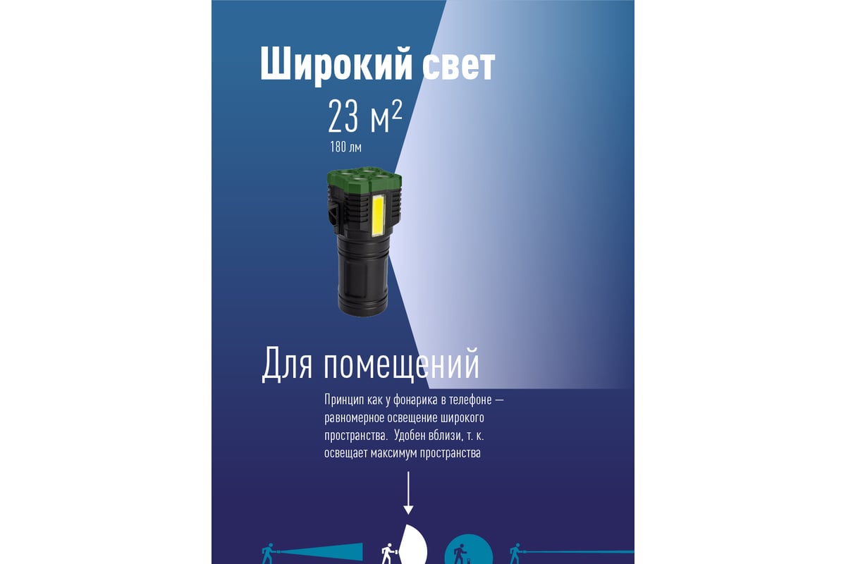 -Световой поток: 180 лм. (луч)/180 лм. (широкий свет, боковой светильник).