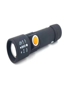 Корпус из высококачественного пластика. Источник света CREE LED XML-T6. Температура света холодный(белый). Функция фокусировки луча ZOOM. Дальность освещения до 300 метров. Имеет 3 режима работы (100%, 50%, мигание). Оснащен встроенным литиевым аккумулятором высокой емкости. Подзарядка возможна от сети 220v через USB переходник.