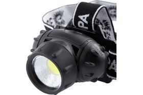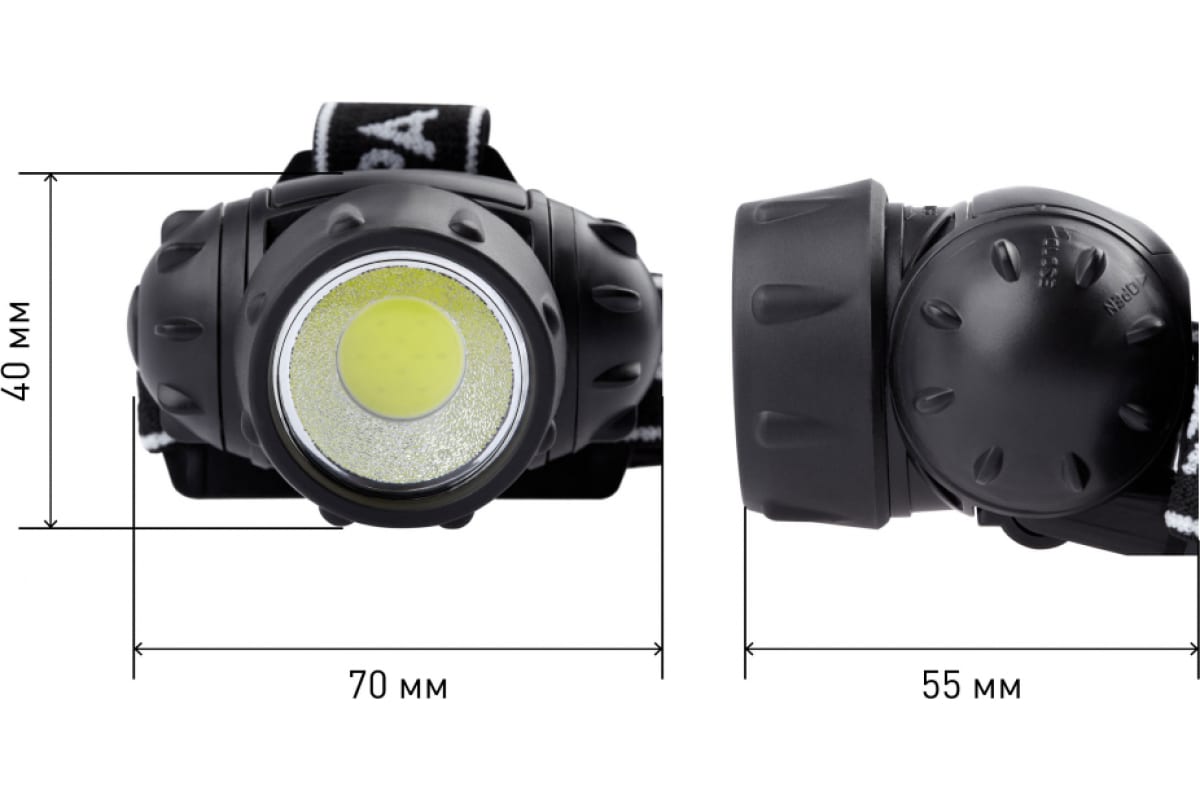 Функциональный и эргономичный налобный LED-фонарь с 3 режимами: максимальная яркость, 50% яркости, аварийное мигание. Угол наклона фонаря регулируется для удобного выбора направления света.