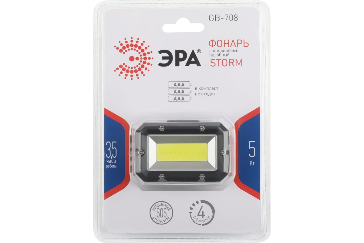 Технические характеристики ЭРА GB-708 Шторм на батарейках, 3 режима, 5 Вт, СОВ, 3хААА Б0052750