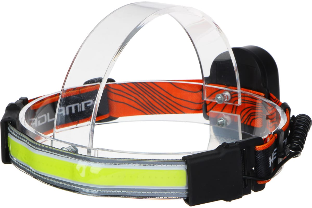 Благодаря ремешку изделие фиксируется на голову, освобождая тем самым руки. Конструкция выполнена из ударопрочного пластика.