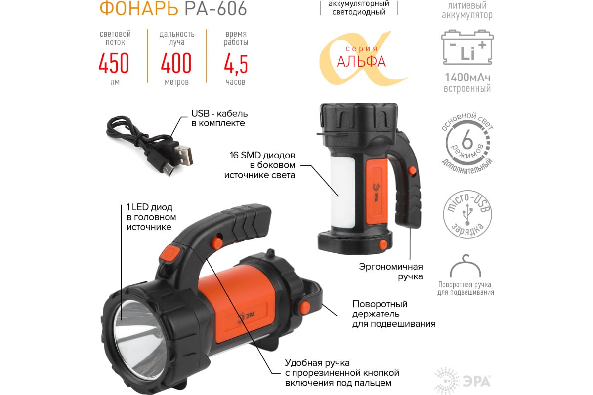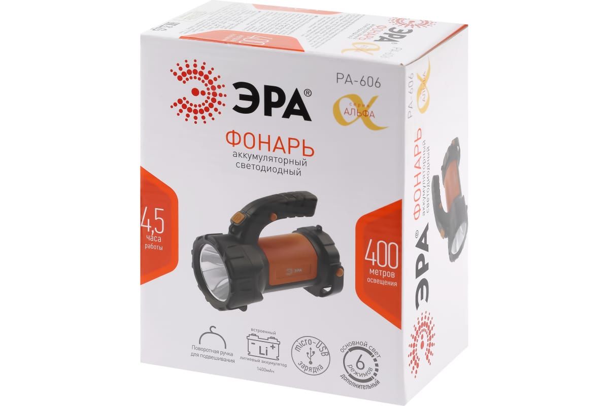 Технические характеристики ЭРА PA-606 АЛЬФА прожектор, 5 Вт, литий, поворотная ручка Б0052744