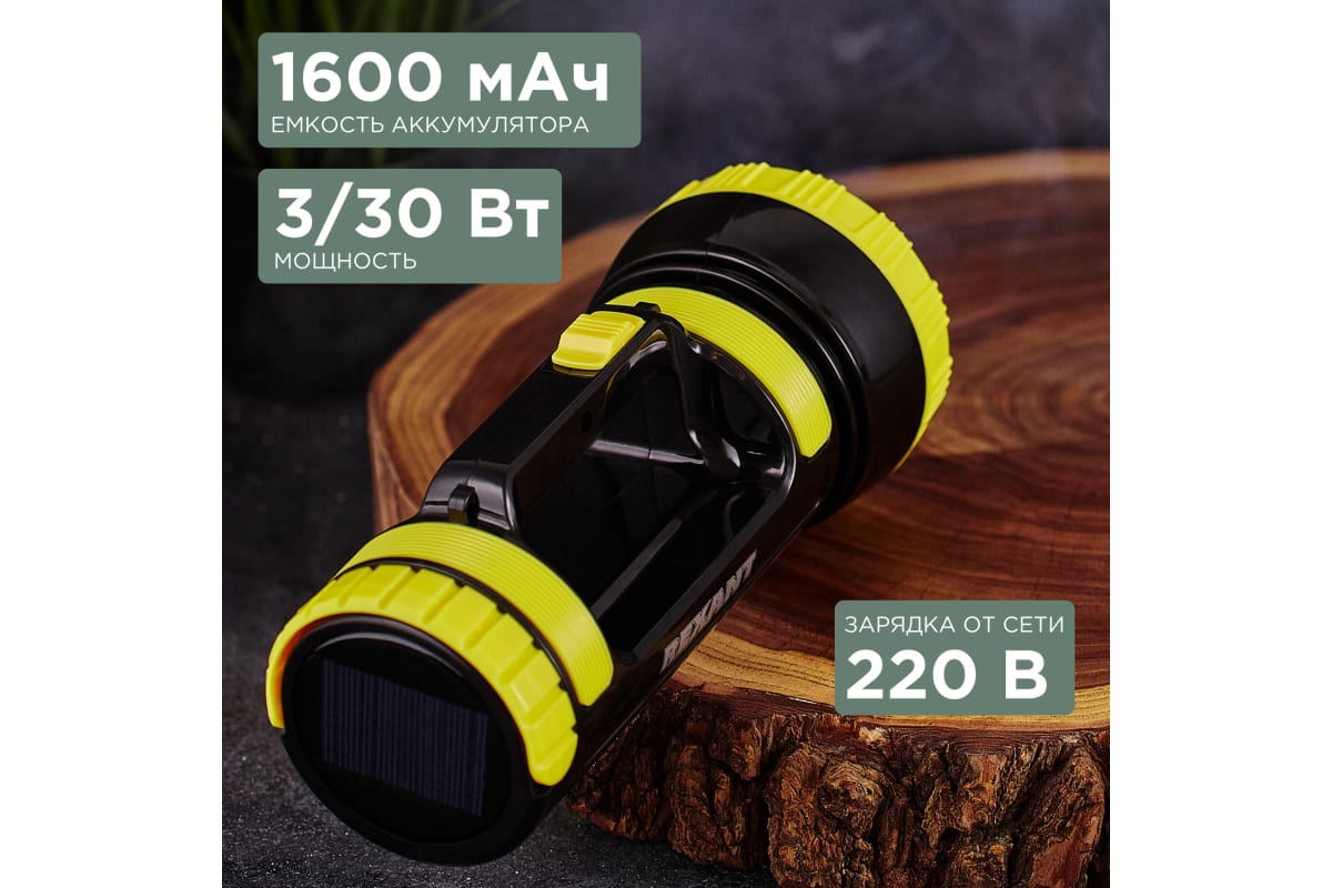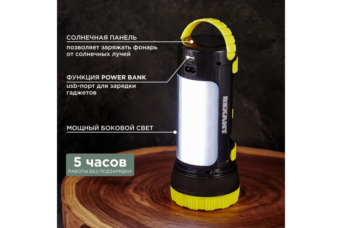 Преимущества REXANT с боковым светом, powerbank, солнечная батарея 75-7822