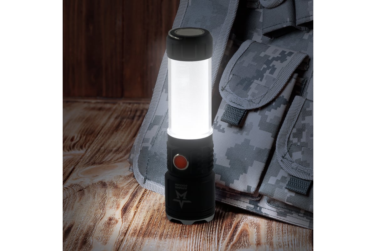 Светодиодный луч повышенной дальности имеет возможность фокусировки. Пять режимов, удобных пользователю - от ближнего заливающего света (для того, чтобы хорошенько осмотреться в темноте) до длинного направленного луча (чтобы определиться с дальнейшим направлением пути).