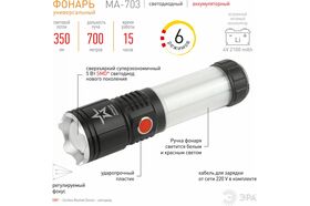 Светодиодный ручной аккумуляторный фонарь ЭРА АРМИЯ РОССИИ MA-703 Тайфун 10Вт 6 режимов Li аккумулятор магнит крючок Б0052320 - универсальный светодиодный аккумуляторный фонарь с лучом повышенной дальности, пятикратным зумом и встроенным светонакопителем. Его легко найти в темном помещении или в траве - после выключения сохраняет небольшое свечение.