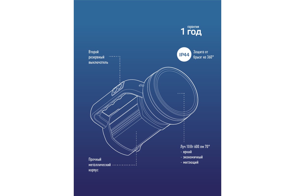 -Количество режимов: 3 (яркий, экономичный, мигающий) / второй резервный выключатель.