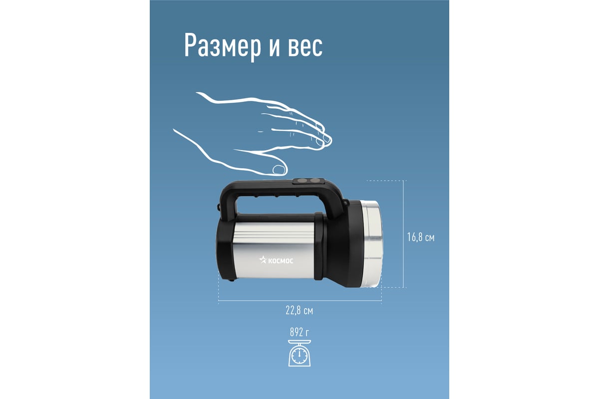 Прожекторный фонарь КОСМОС (KOC900Lit) спроектирован для тех, кому необходима максимальная надежность. Основные детали корпуса из алюминия.