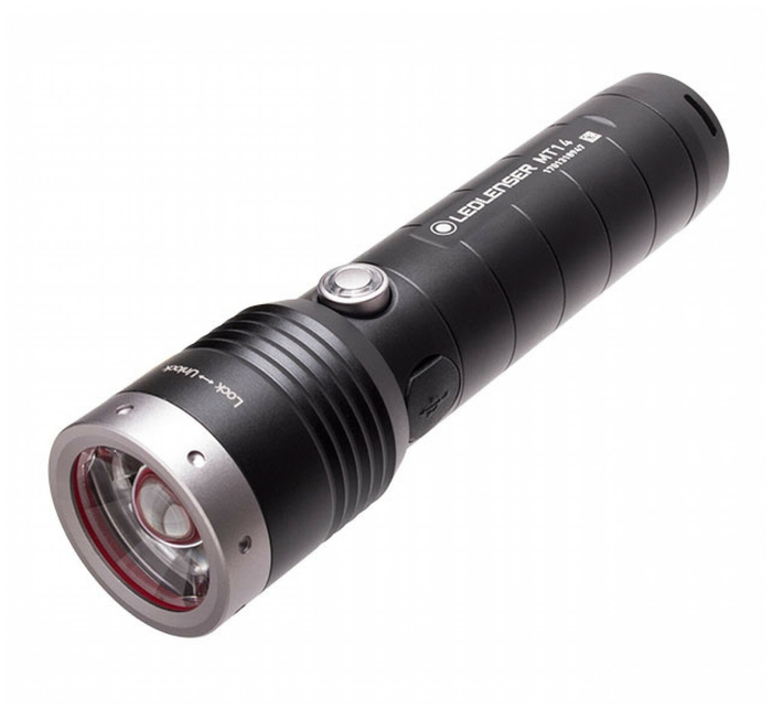 Описание Ручной светодиодный фонарь Led Lenser MT14 представляет собой алюминиевый корпус черного цвета с серебристым кантон вокруг головной части и кнопкой индикатором рядом с ней.
