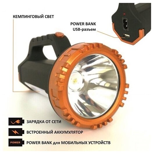 Особенности встроенный power bank, прожектор