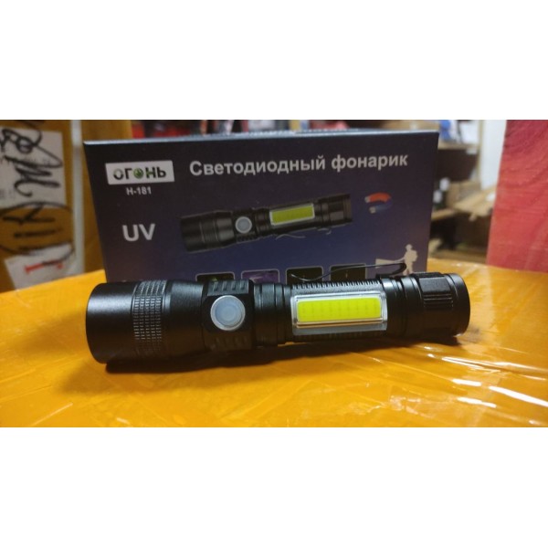 Фонарь ручной 181 (18650, UV+T6+COB+RED, Magnet)