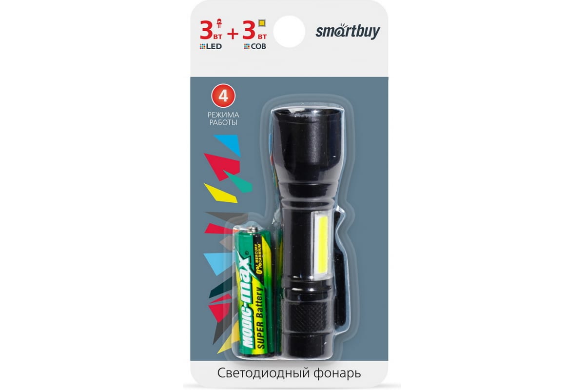 Технические характеристики Smartbuy 3Вт LED+ 3 Вт COB, AA, черный SBF-104