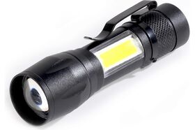 Светодиодный алюминиевый фонарь Smartbuy 3Вт LED+ 3 Вт COB, AA, черный SBF-104 выполнен из авиационного анодированного алюминия и имеет четыре режима работы: дальний свет, ближний свет, кемпинг, стробоскоп. Клипса для крепления на ремень.