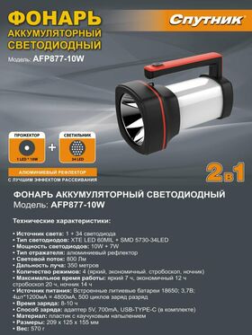 -Мощность светодиодов: направленный свет - 1 светодиод мощностью 10W; заливной (рассеянный) свет - 34 светодиода суммарной мощностью 7W.