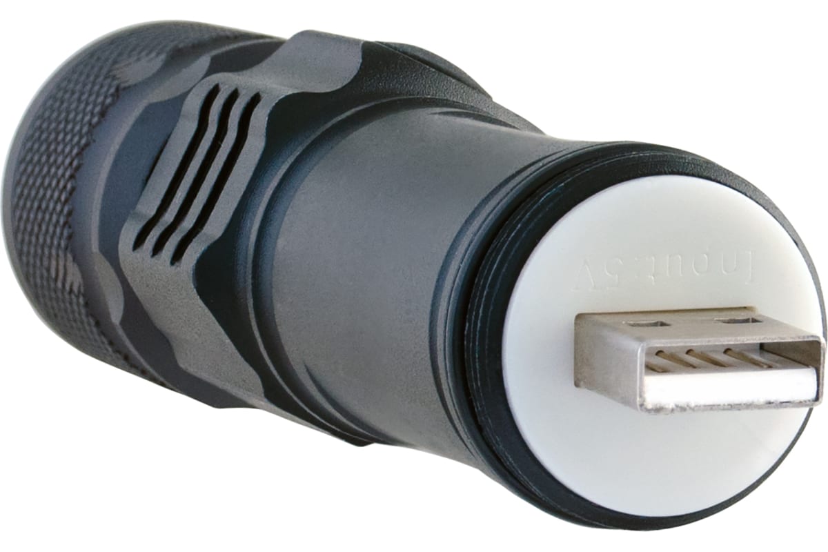 Долговечный компактный ручной фонарь с мощным энергоемким аккумулятором, заряжаемым от сети при помощи USB разъема, работает в трех световых режимах.