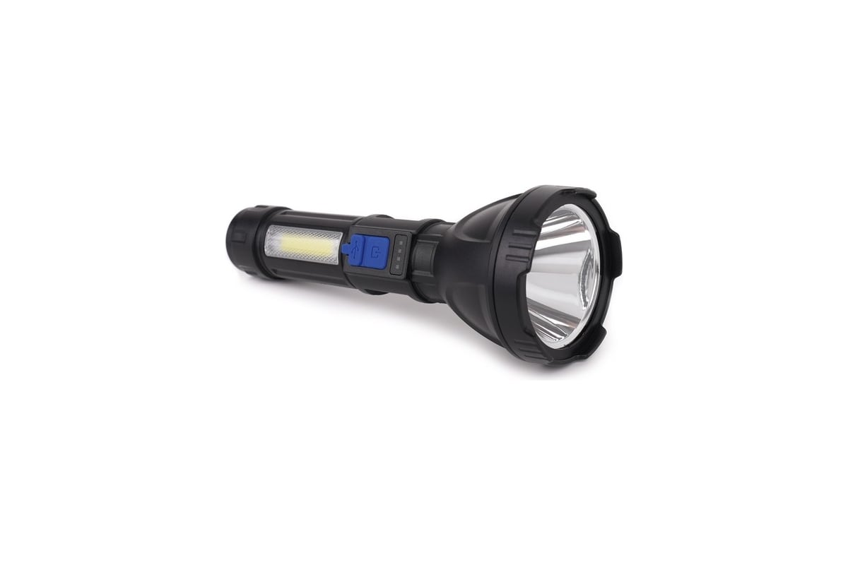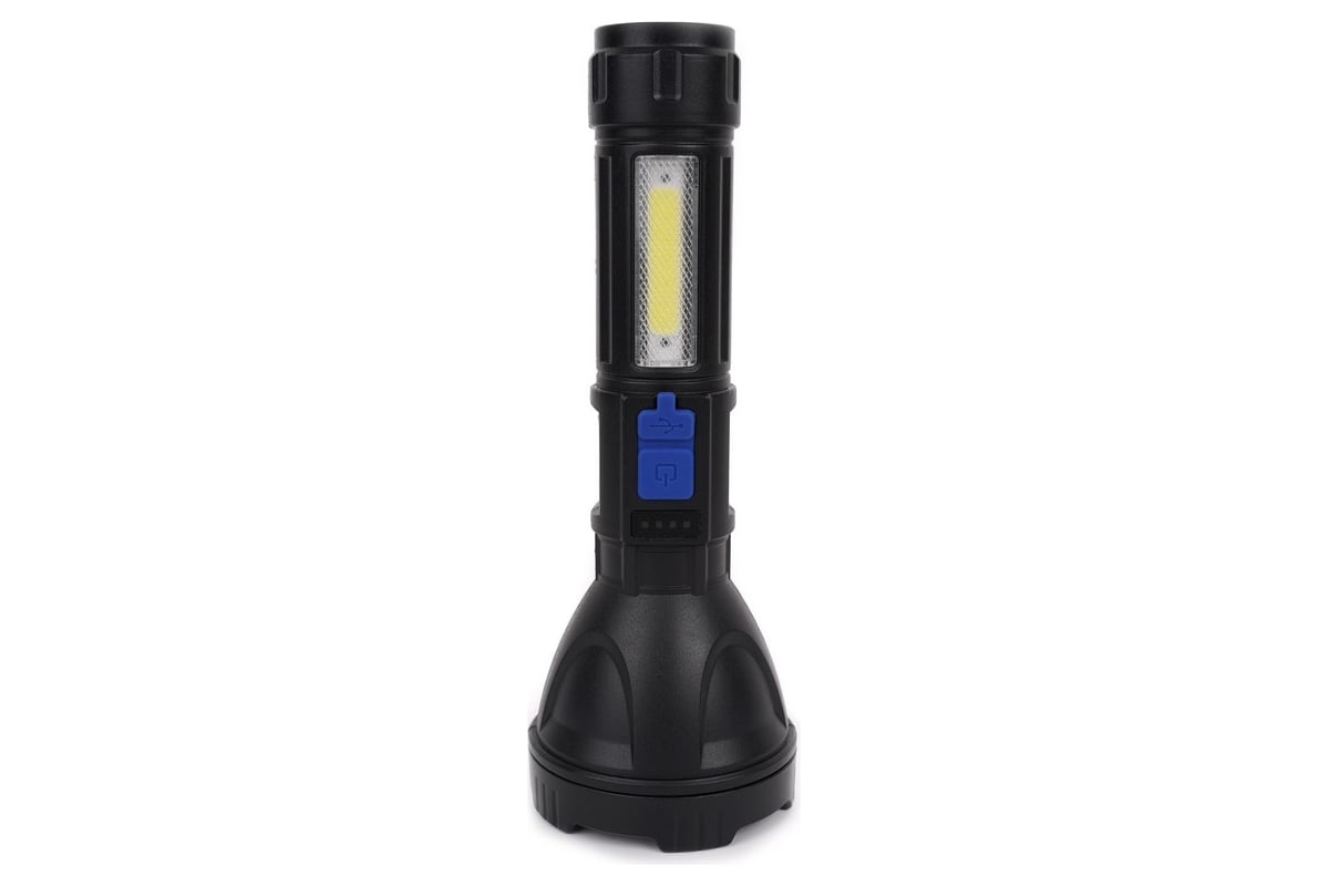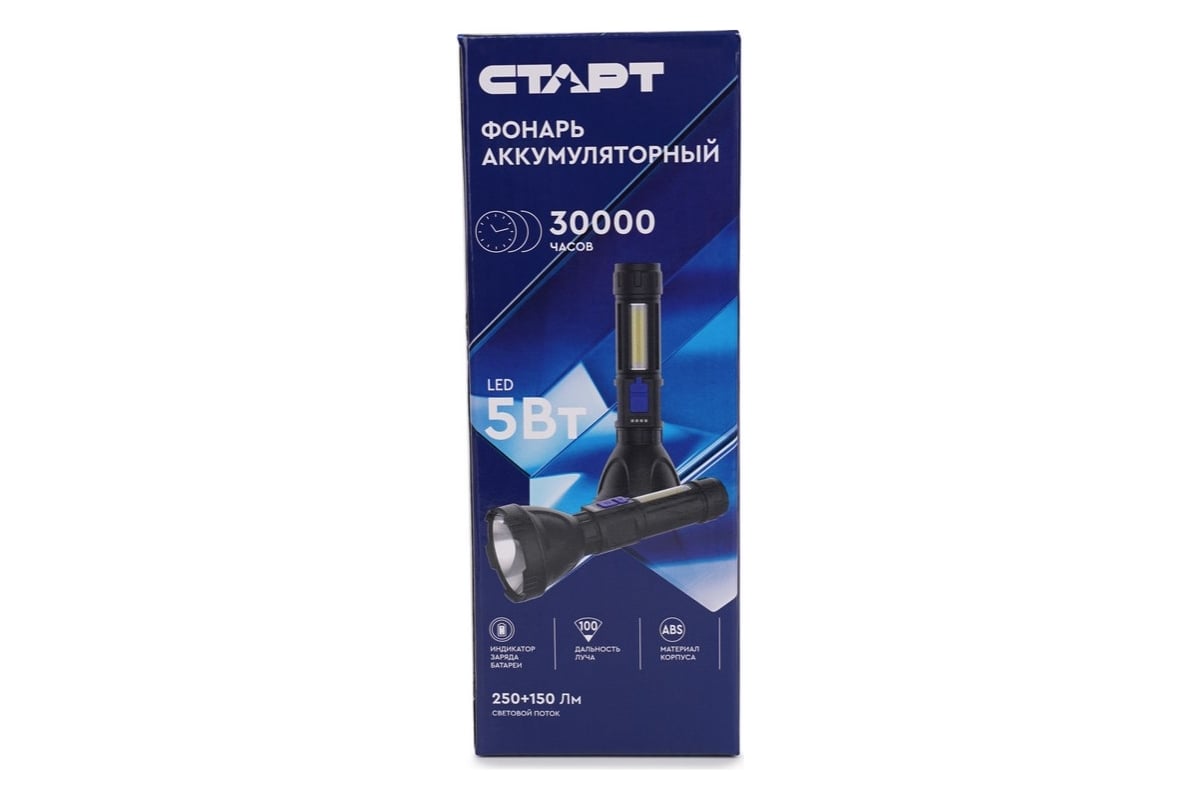 Осветительный элемент фонаря объединяет в себе COB (чип на основе светодиодов) и LED, мощностью 5 Вт, за счет чего световой поток составляет 250+150 Лм. Это не только обеспечивает достаточную яркость для освещения на дальних расстояниях, но и равномерное распределение свечения ближнего пространства. Длина луча – до 100 метров.
