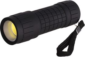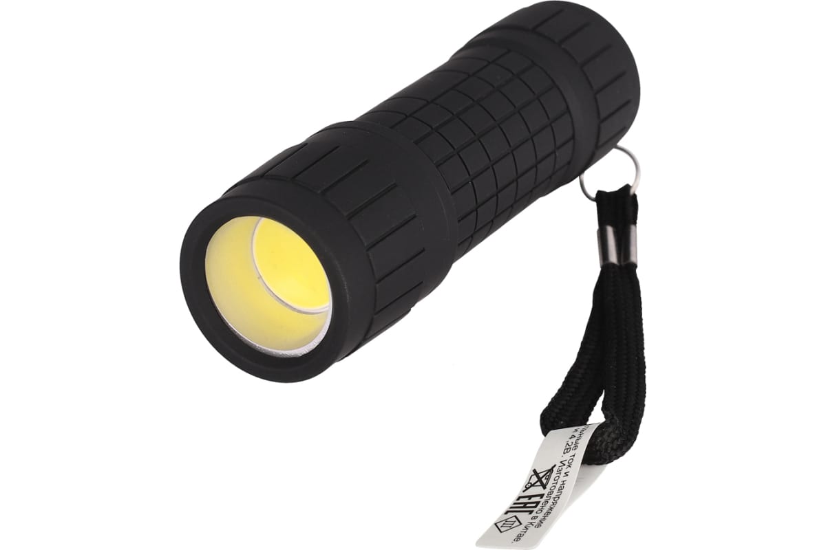 Фонарь Ultraflash электрический светодиодный. Цвет корпуса: черный. Работает от батареек 3 X ААA (не входят в комплект). Материал корпуса – пластик с каучуковым покрытием. Источники света – COB светодиод ближнего радиуса действия мощностью 3 ватта с цветовой температурой 6500К с общим световым потоком до 100 люмен. Дистанция освещения – до 30 метров. Выключатель – кнопочного типа (с защитной каучуковой накладкой) в задней части фонаря. Время работы при использовании алкалиновых батареек: до 8 часов. Комплектация: фонарь, ремешок для переноски, инструкция, упаковка. Степень пыле-влаго-защиты IPX4. Упаковка: блистер – пакет. Максимальный линейный размер фонаря 9,5 см. Размер упаковки 3,5 см x 10 см x 19 см. Вес без упаковки 0,04 кг. Вес с упаковкой 0,052 кг.