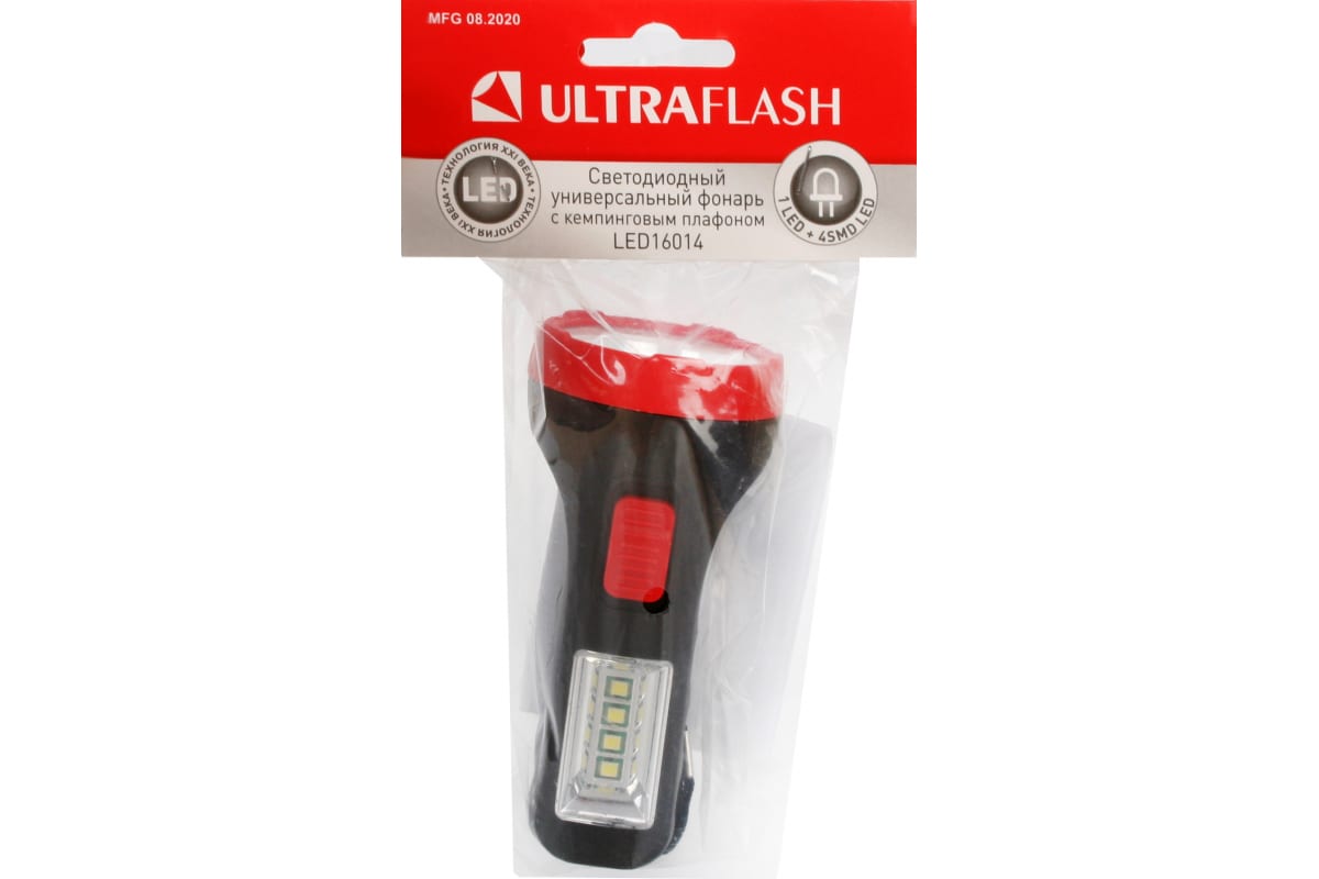 Технические характеристики Ultraflash LED16014 черный, 1 + 4SMD LED, 2 режима, 1XR6, пластик 14253