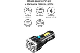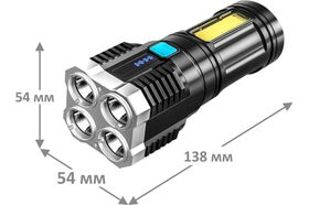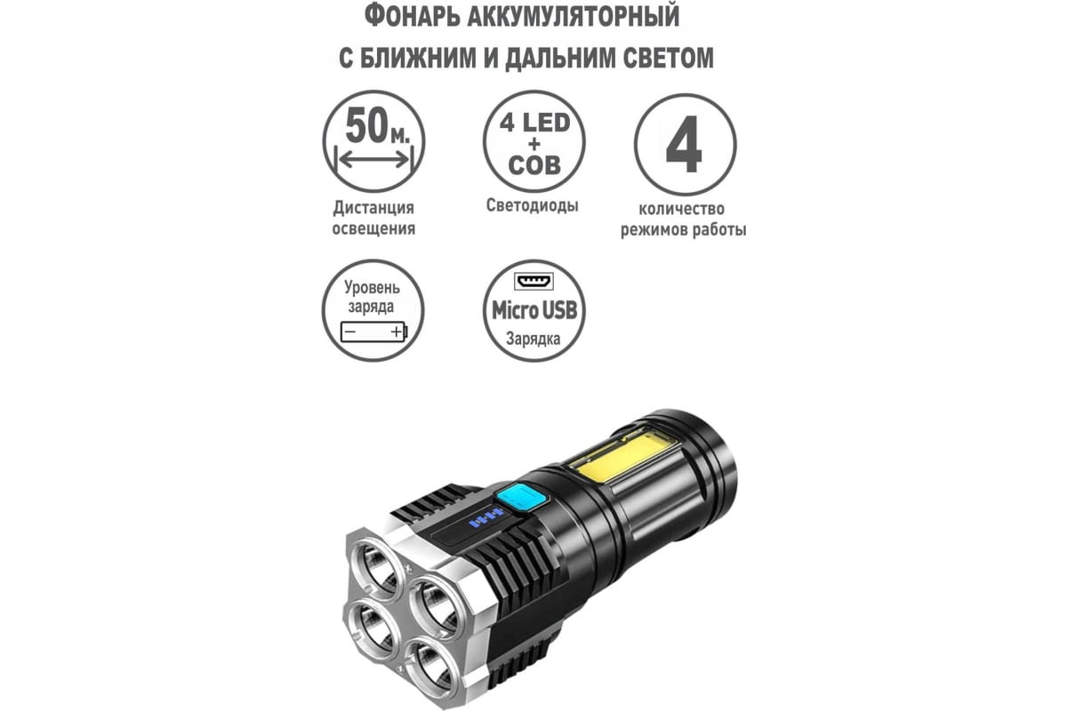 -4 режима работы – 4 точечных LED 100% / 50% / мигающие / COB