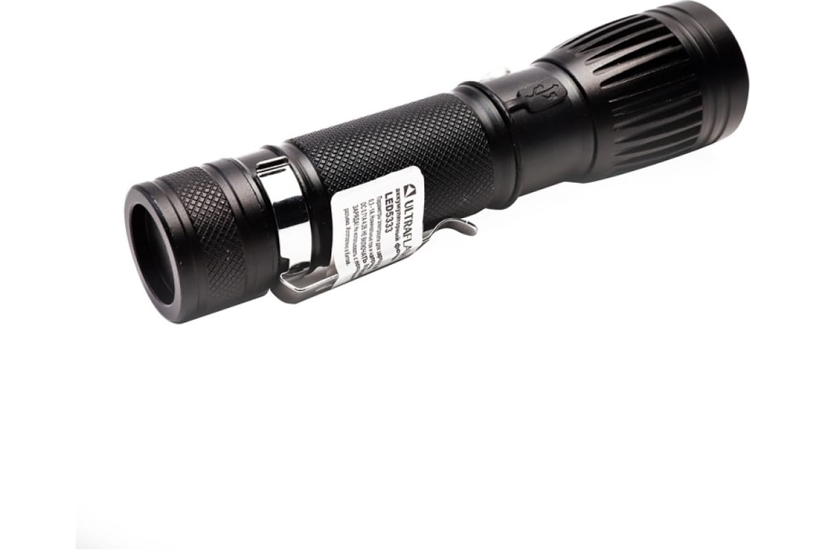 Фонарь Ultraflash электрический светодиодный аккумуляторный с фокусировкой луча и боковой подсветкой.
