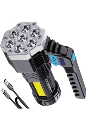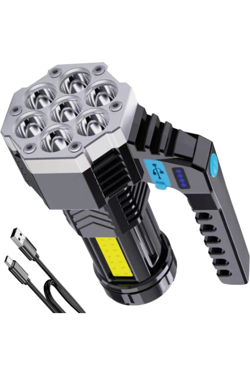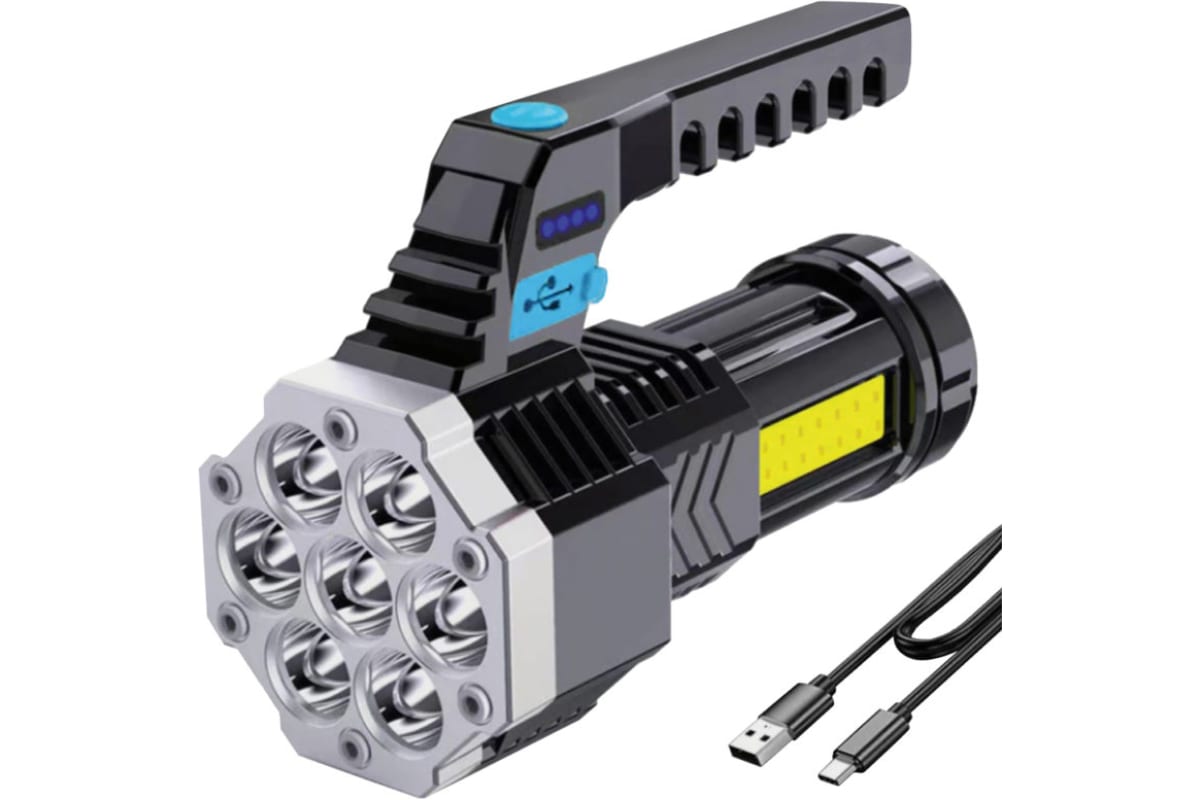 Дистанция освещения - до 300 метров. 4 режима работы - 7 точечных LED 100% / 50% / мигающий / COB.