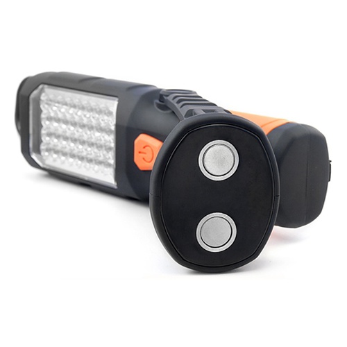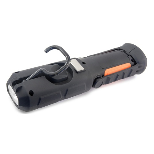Возможность регулировки положений (6 вариантов) относительно опоры фонаря. Система сильных магнитов позволит закрепить его на металлической поверхности под любым углом для удобства работы. На задней грани фонаря находится складывающийся крючок для подвешивания.