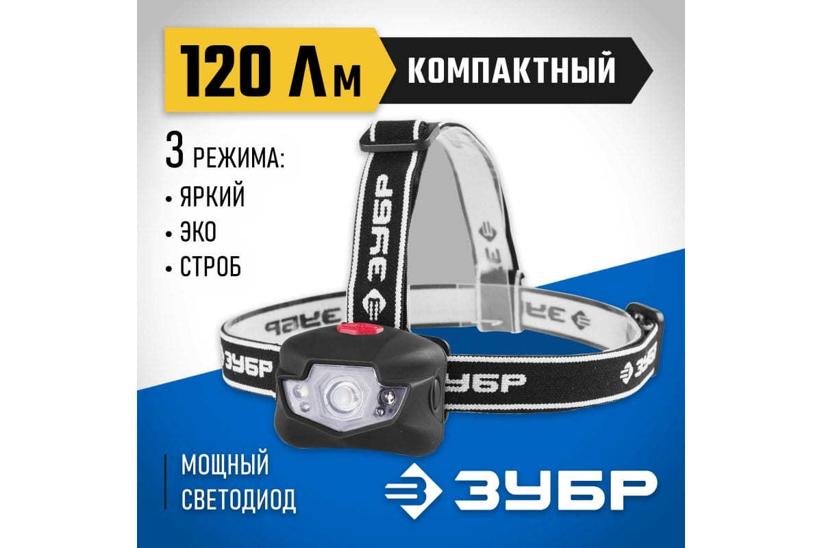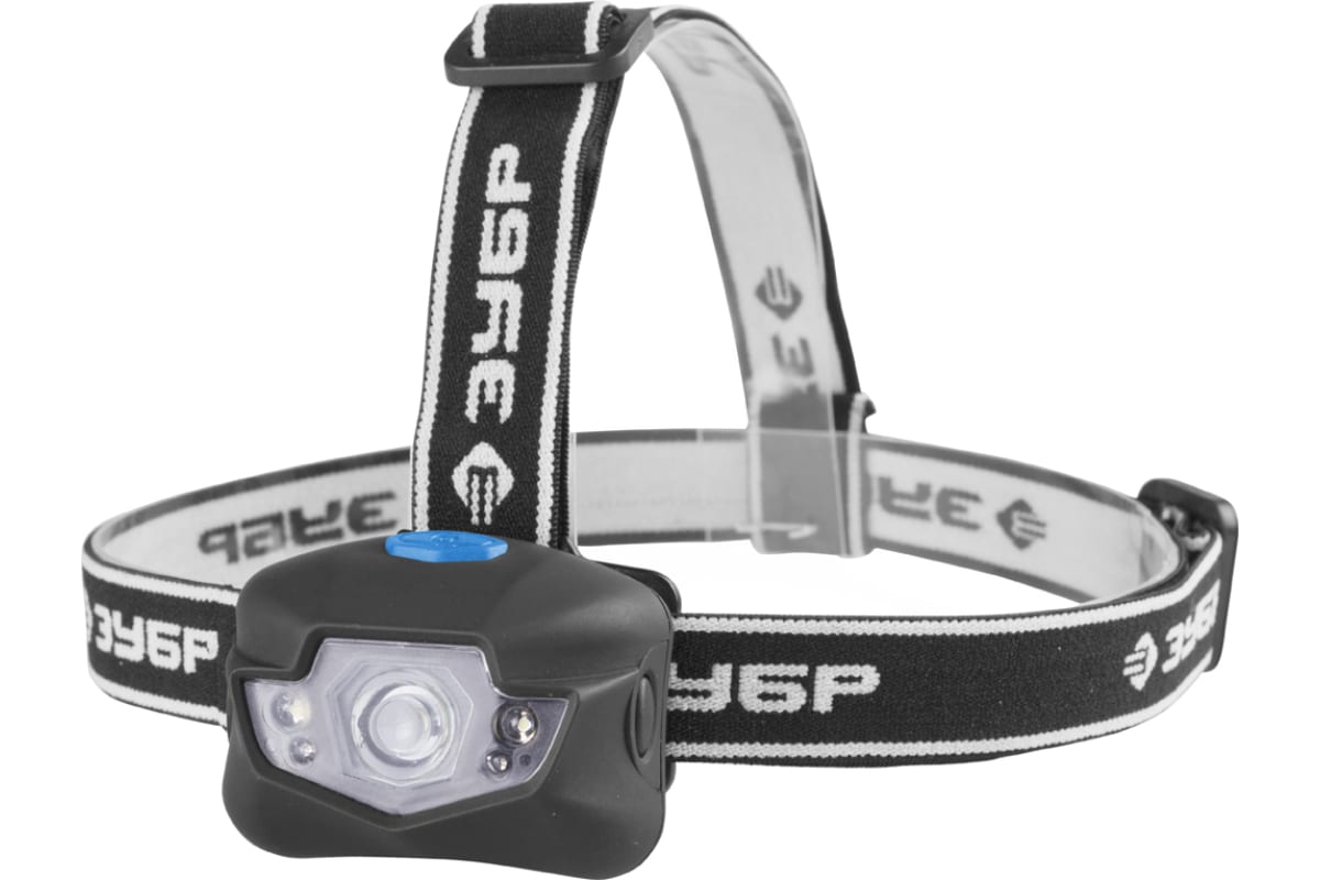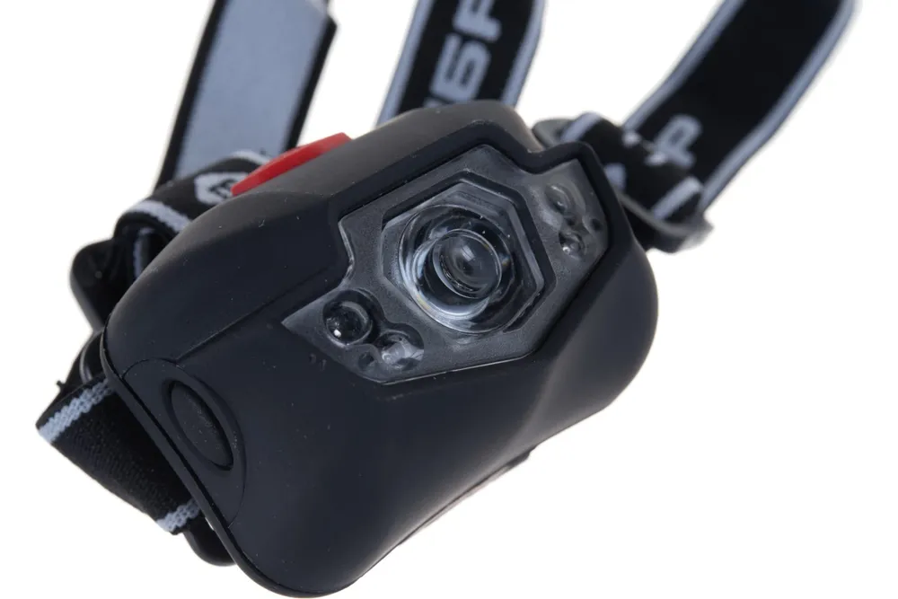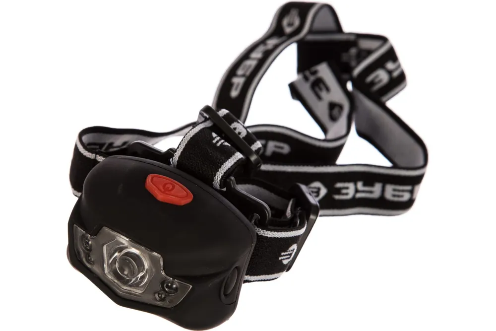 -Сниженный вес налобного светодиодного фонаря 3Вт, 120Лм +4LED, линза коллиматор, 3 режима, 3ААА Зубр ЭКСПЕРТ 56434;
