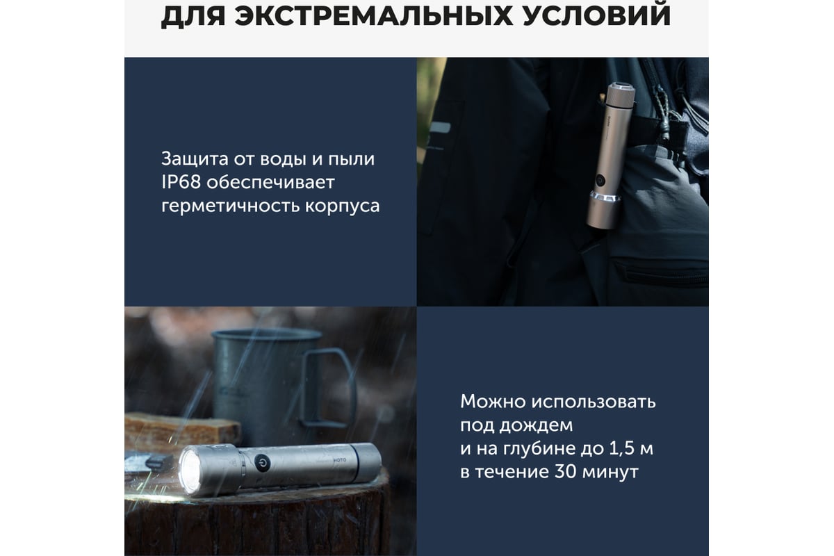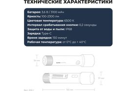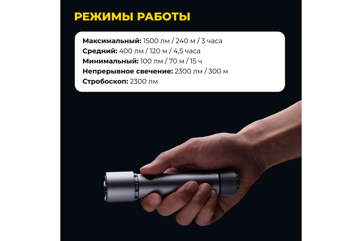 Быстрый интервал срабатывания кнопки 0,2 секунды экономит заряд фонаря, а также быстро реагирует на ваши действия.