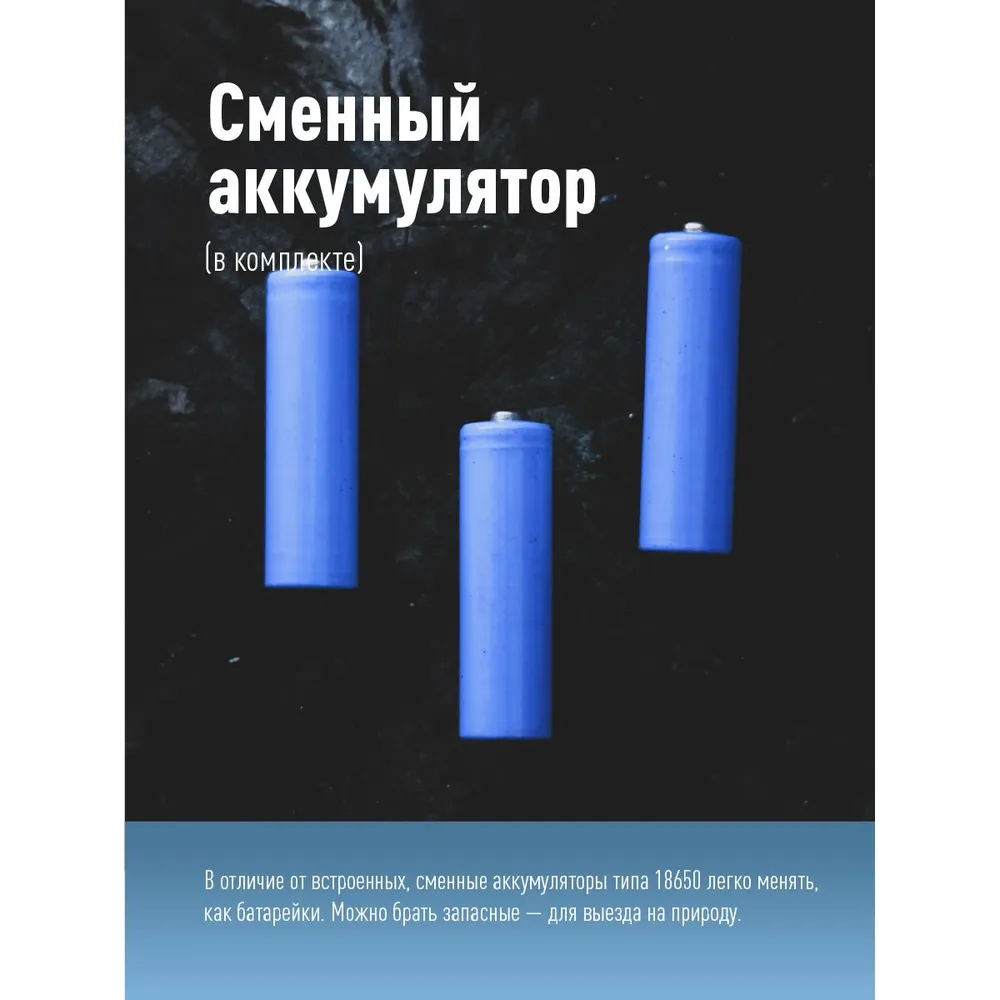 1.Фонарь со съемным аккумулятором 18650 в комплекте.