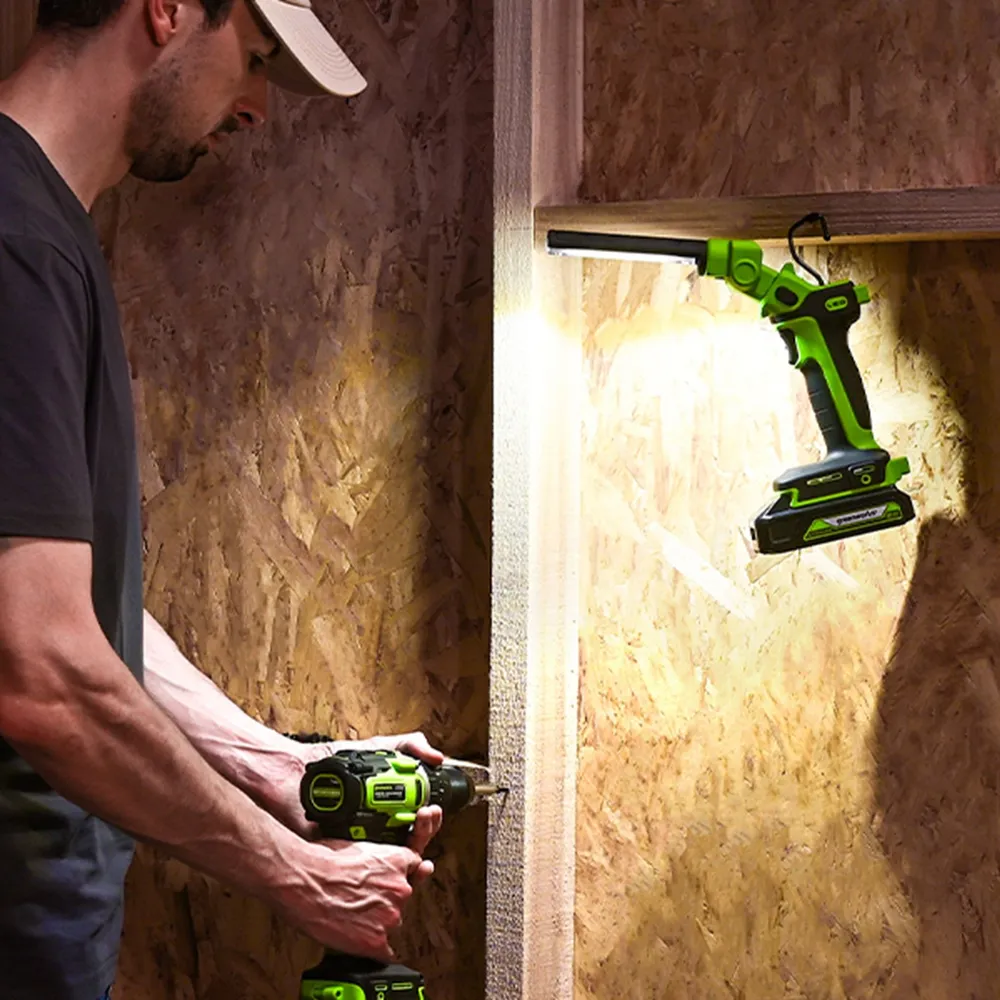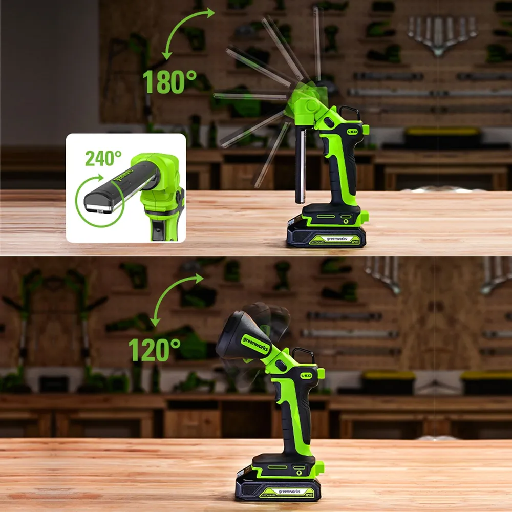 -Рабочий аккумуляторный LED-фонарь 2-в-1 Greenworks G24UL;