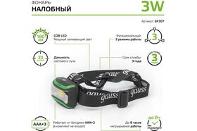 Технические характеристики Gauss GFL307 3W 180lm 3xААА LED GF307