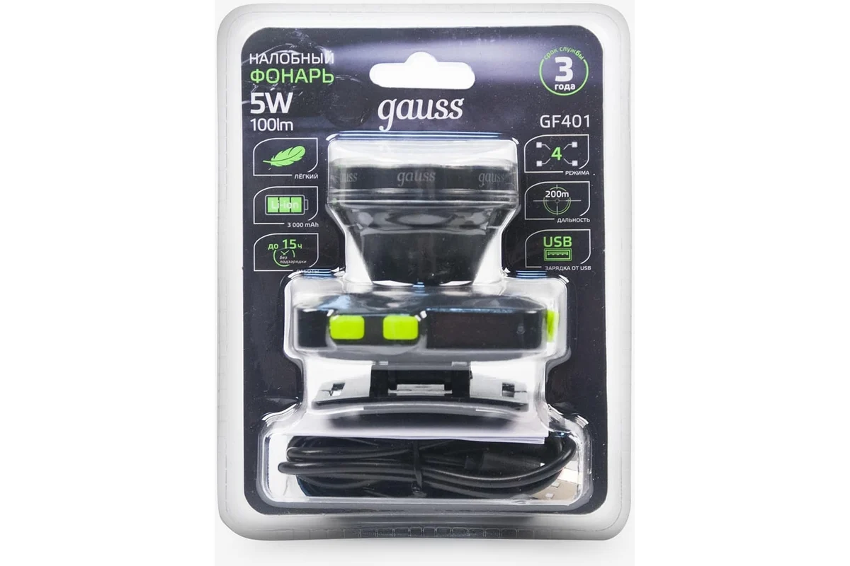 Технические характеристики Gauss GFL401 5W 100lm диммируемый Li-ion 3000mAh LED GF401