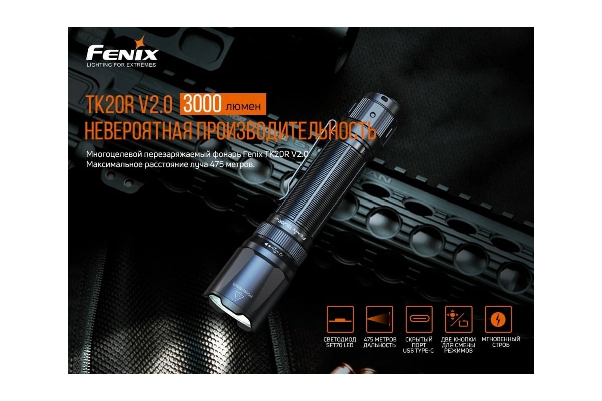 Fenix TK20R V2.0 фонарь "с собой" для интенсивного свечения и тактических задач.