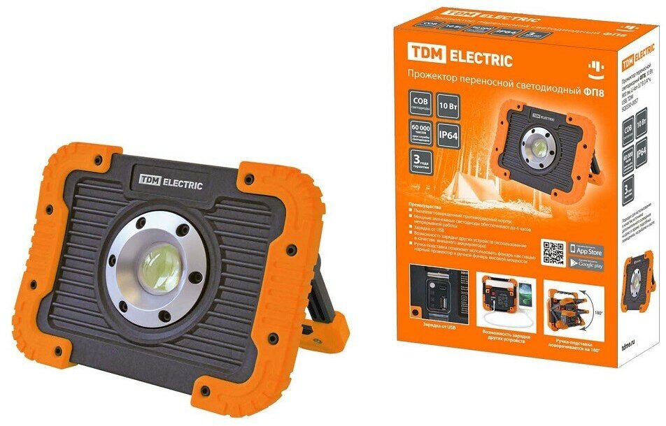 Технические характеристики TDM ФП8 10 Вт, 900 лм, Li-Ion 3,7 B 3 Aч, USB, SQ0350-0057
