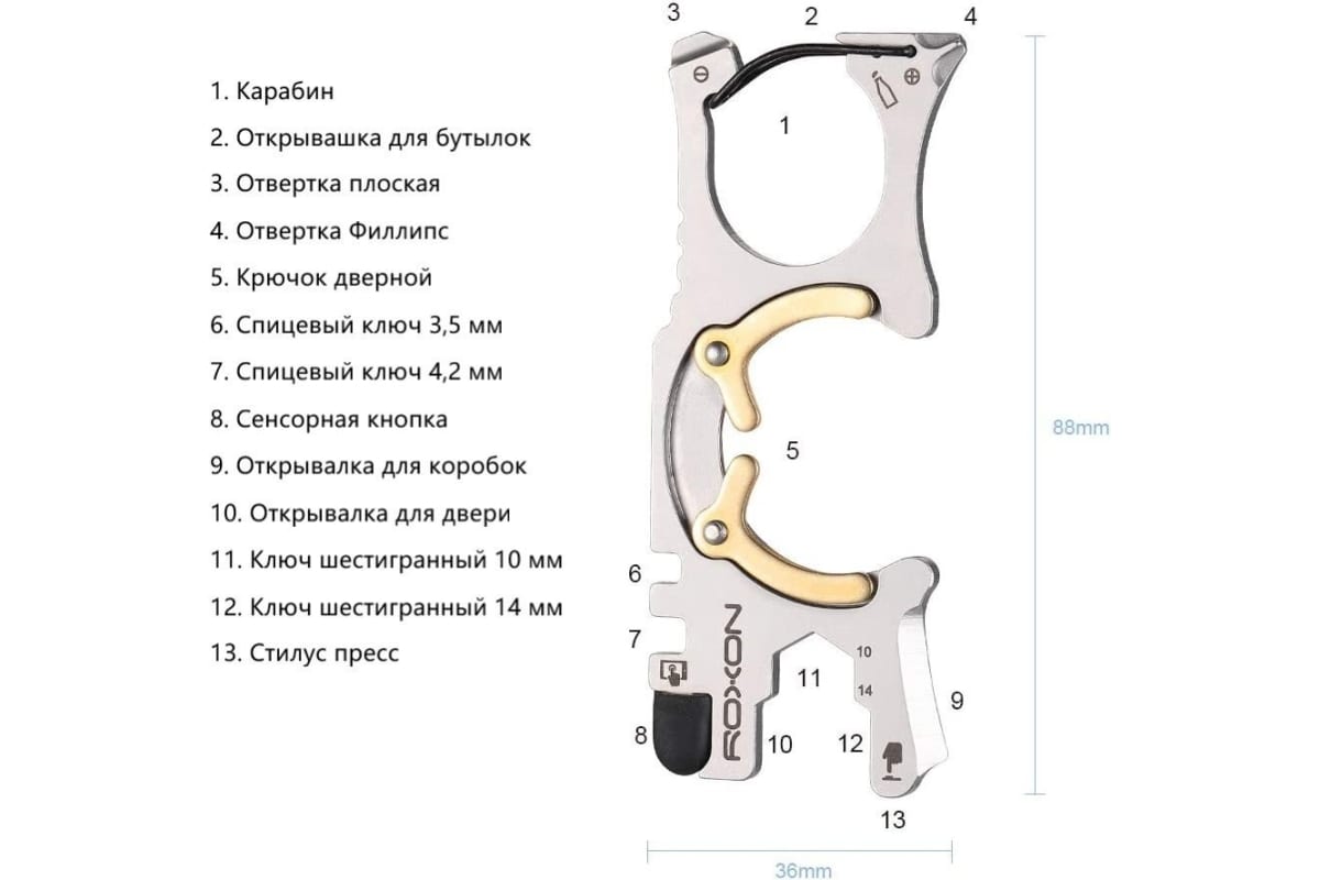Поэтому компания Roxon придумала решение в виде такого удобного и полезного мультиинструмента. Roxon Spirit S705 имеет небольшие габариты, при этом в себе объединяет 13 разных функций. А именно: